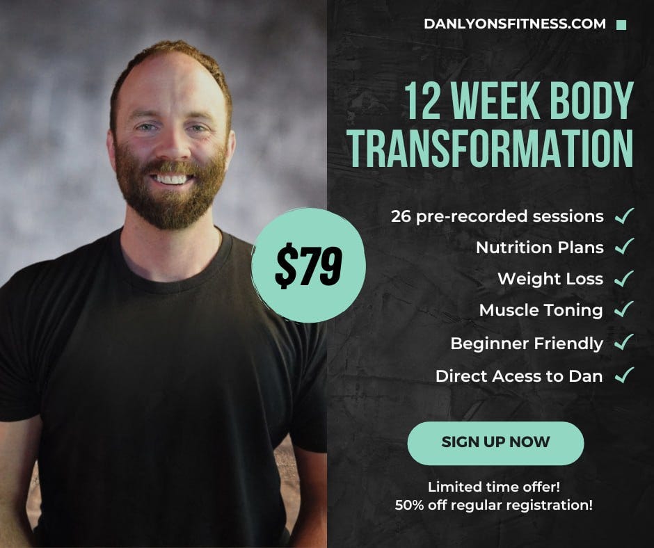 12 Week Body Transformation now only $79: https://www.danlyonsfitness.com/sales-page-a6002c53-19af-4ee9-966f-0d9cc36c29a9